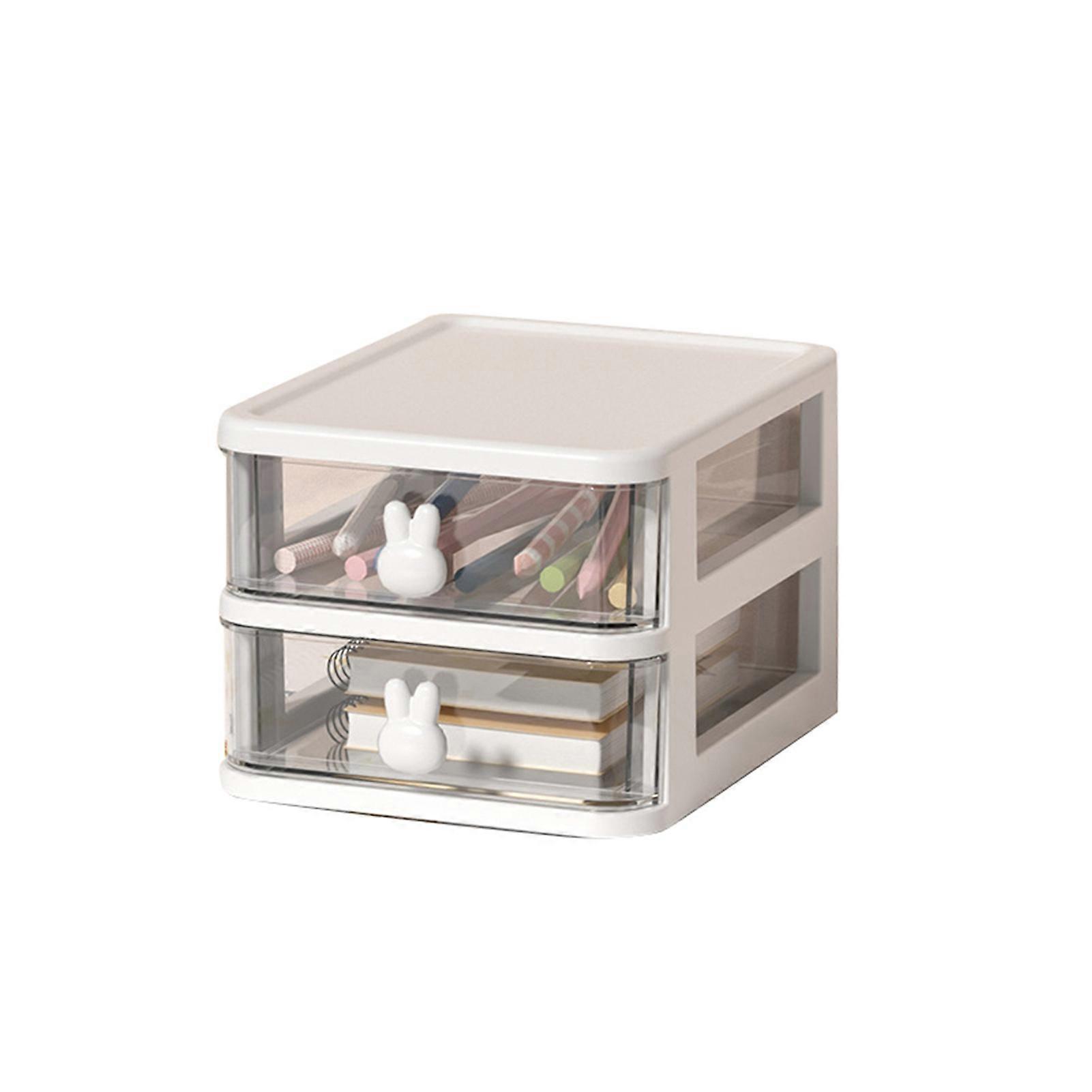 Desk Storage Box: 2 Tier Transparent Plastic with Bunny Handle for Office in White