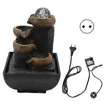 Desktop Fountain Ornament Tabletop Flowing Water Ornament Resin Crafts with Colorful Lamp Bead EU Plug 220-240V