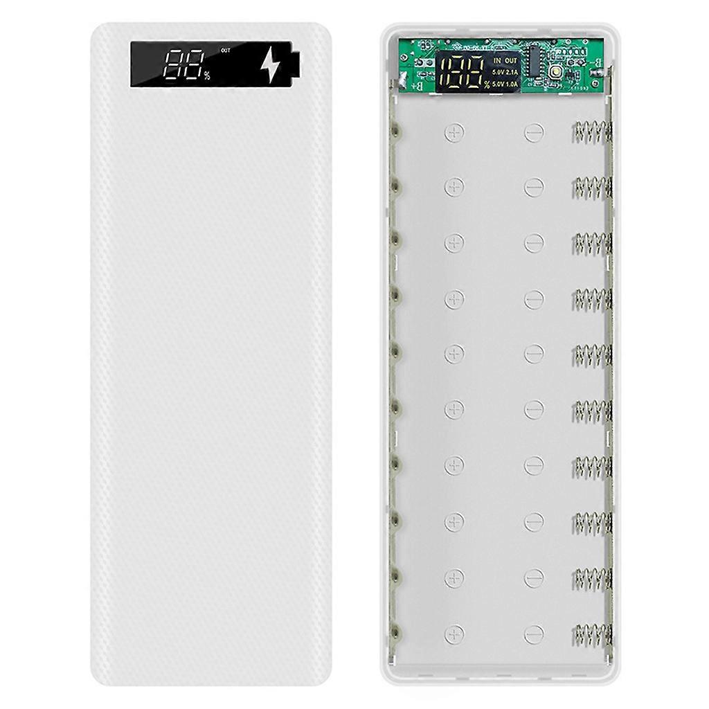 Detachable USB LCD Display DIY 10x18650 Battery Case Power Skin Portable External Box without Battery White