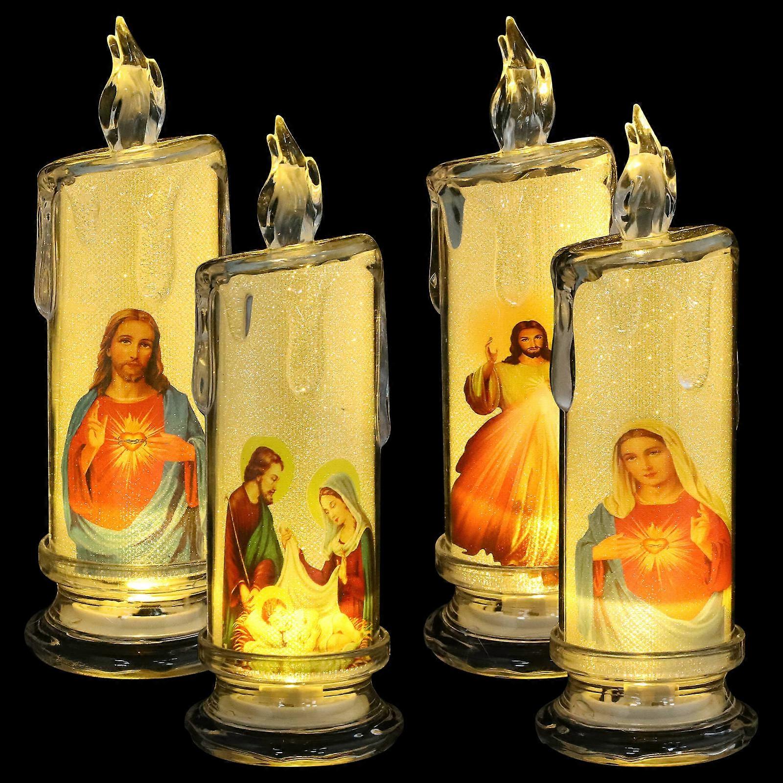 Devotional Candles Led Small Desk Lamp Jesus Led Candle Light Family and Friends Assorted Color Religious Service Addition