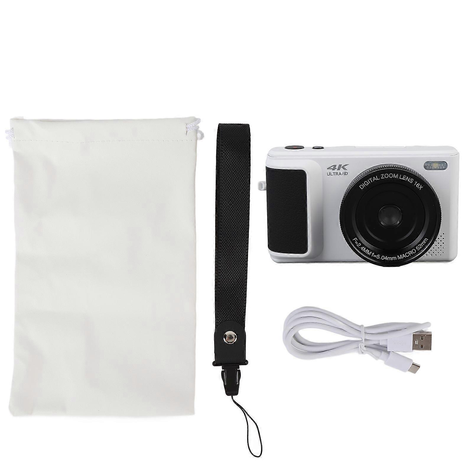 Digital Camera 4K 64MP 180 Flip Screen Multiple Beauty Filters Anti Shake Auto Focus 16x Zoom Digital Mirrorless Camera for Selfie Photo Video White