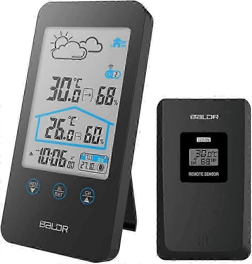 Digital Thermometer Hygrometer,with Outdoor Sensor Barometer ,Backlight Time Display