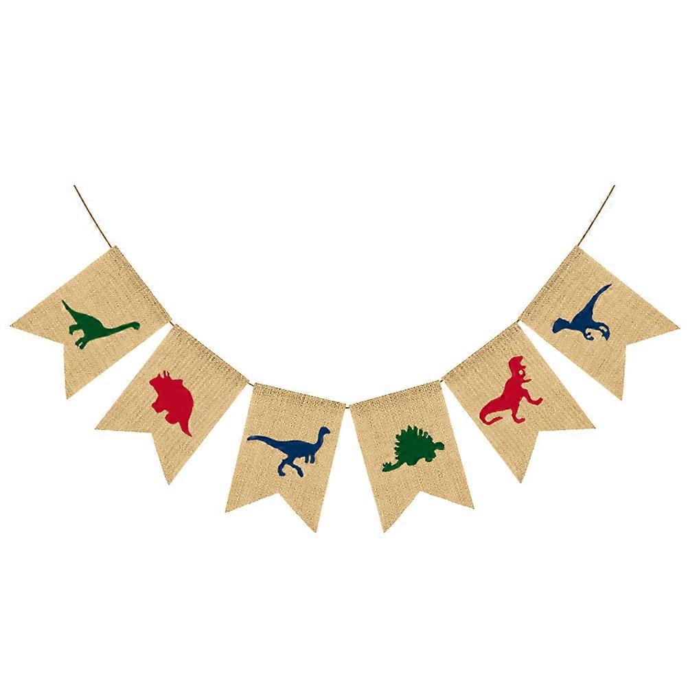 Dinosaur Party Decorations Colorful Dinosaur Burlap Banner Swallowtail Shape Assorted Color Theme Party Supplies 1Pack