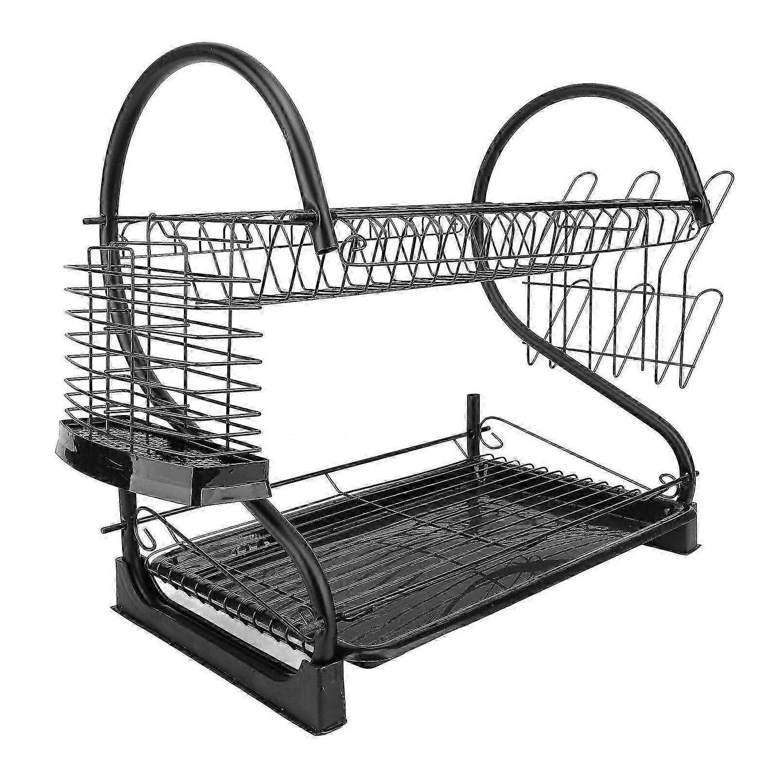 1.Space Saving: Double layer dish rack saves space on kitchen countertop and organizes various utensils and plates. Easy to assemble, helping you save time. 2.Sturdy Material: Made of high strength iron and plastic, the dish dryer rack ensures long term use with enough space to store more items without cluttering the countertop. 3.: No additional tools required for DIY assembly, creates a drying area in seconds for dishes and utensils. The dish rack is a simple and effective solution for drying kitchenware. 4.Efficient Drainage: Features a drip tray to keep dishes and plates tidy. The dish rack organizer is ideal for drying dishes, cookware, tableware, and kitchen utensils conveniently.