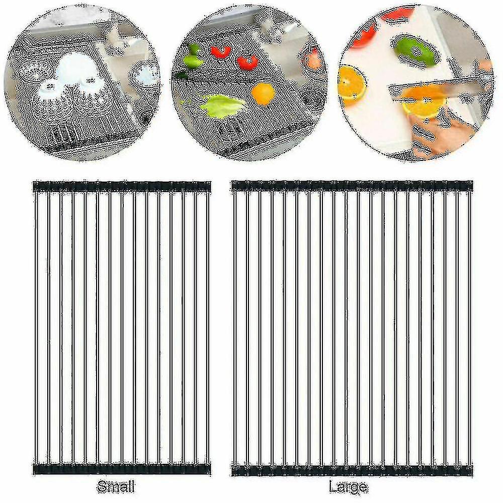 Dish Rack Drying Drainer Over Sink Stainless Steel Rack Roll Up Foldable Kitchen