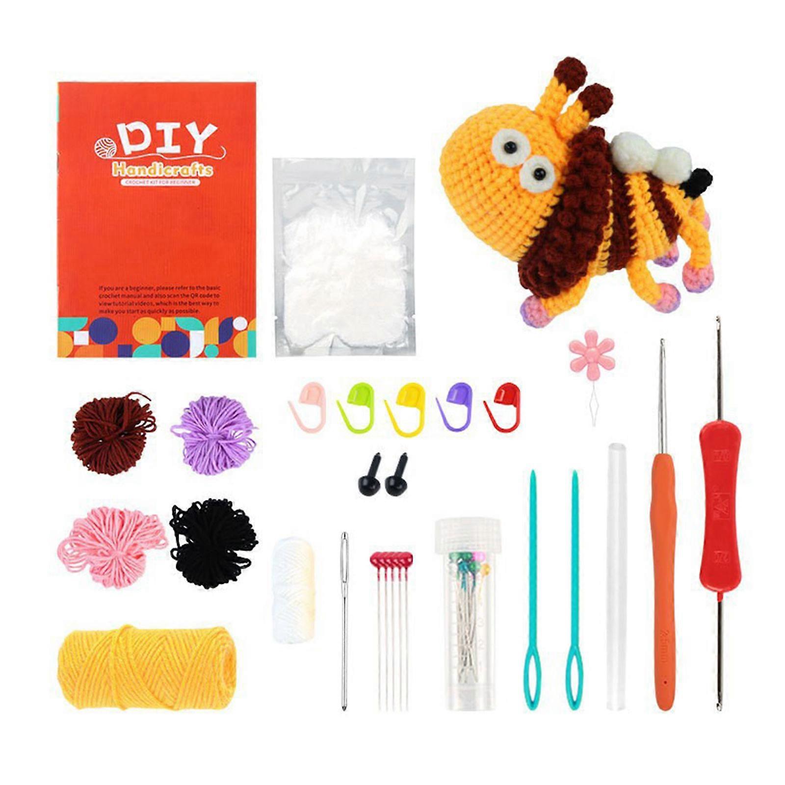 DIY Crochet Insect Kits for Beginner with Yarn, Crochet Hook, Needle, Knitting Marker, Step-by-Step Instruction