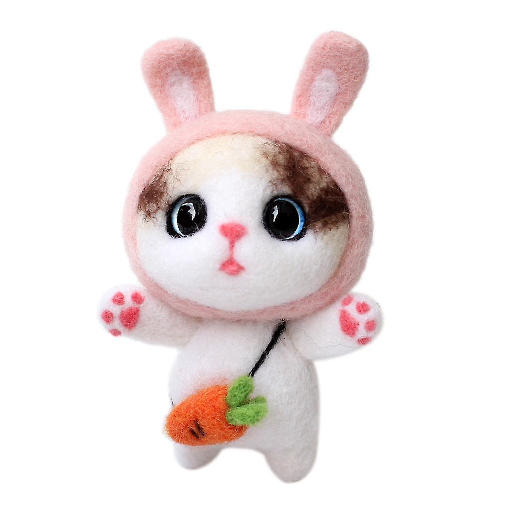DIY Handmade Cat Needle Felting Kit for Beginners with Basic Tools Pink