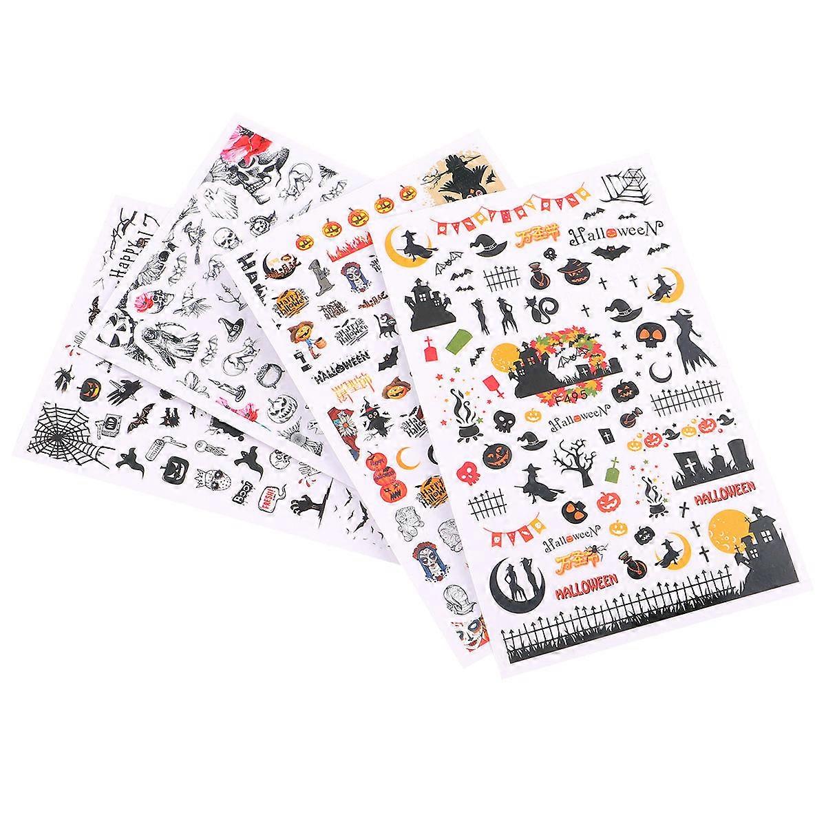 DIY Nail Art Using 4 Sheets Of Assorted Color Halloween Stickers For Women Perfect For Daily Wearing