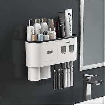 Double Automatic Toothpaste Dispenser with Toothbrush Holder, Large Storage Organizer with 6 Slots f