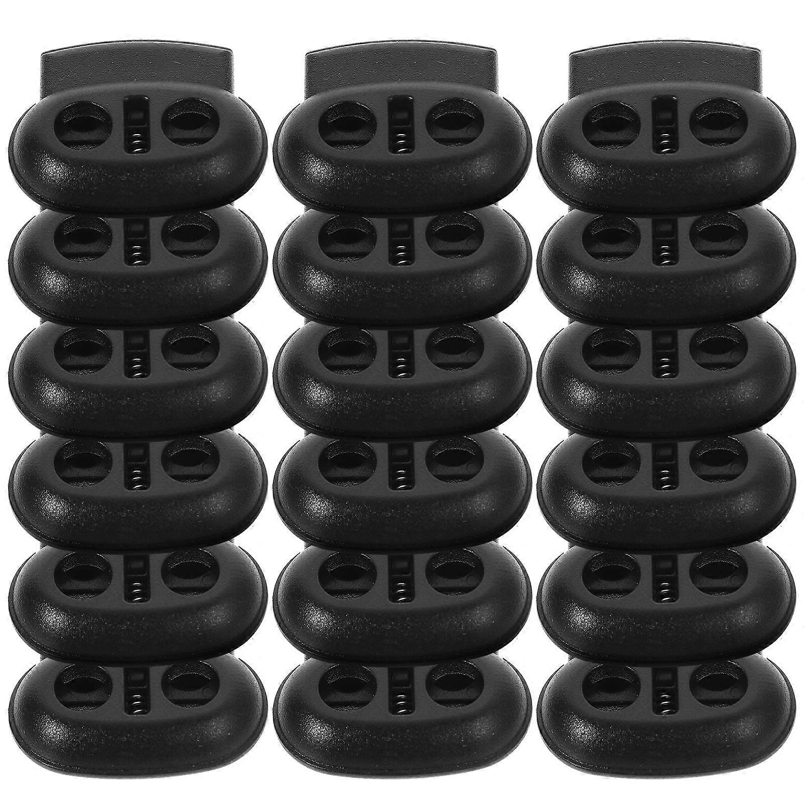 Double Hole Cord Lock with Spring Loaded Design for Rope Fixed Use Black Plastic 20PCS