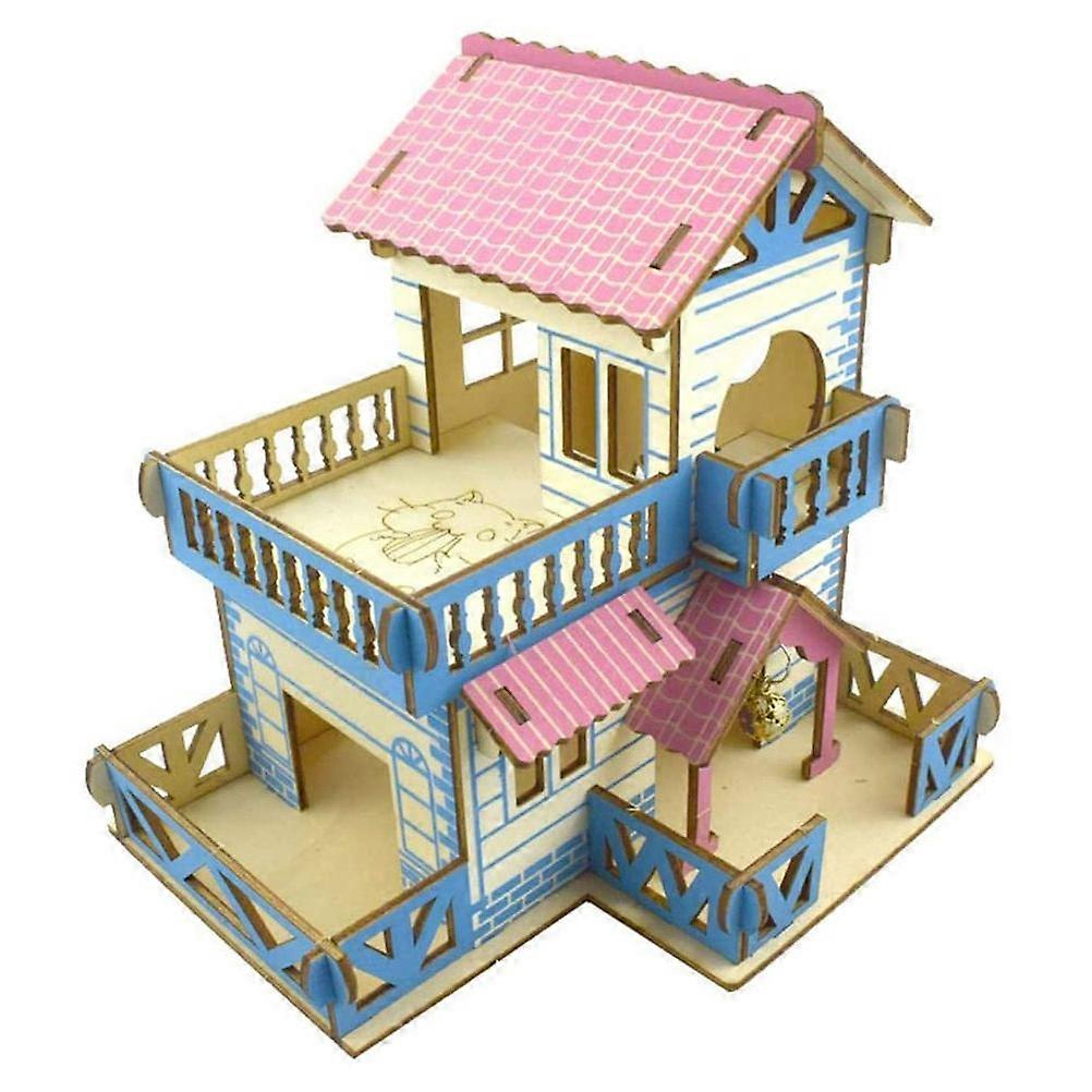 Double-Layer Hamster Wood Villa 2Pcs for Pet Use Assorted Color