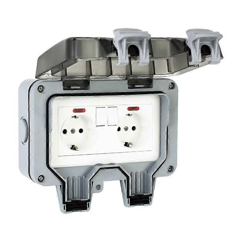 Double Waterproof Socket with Independent Switch, IP66 Outdoor Electrical Socket