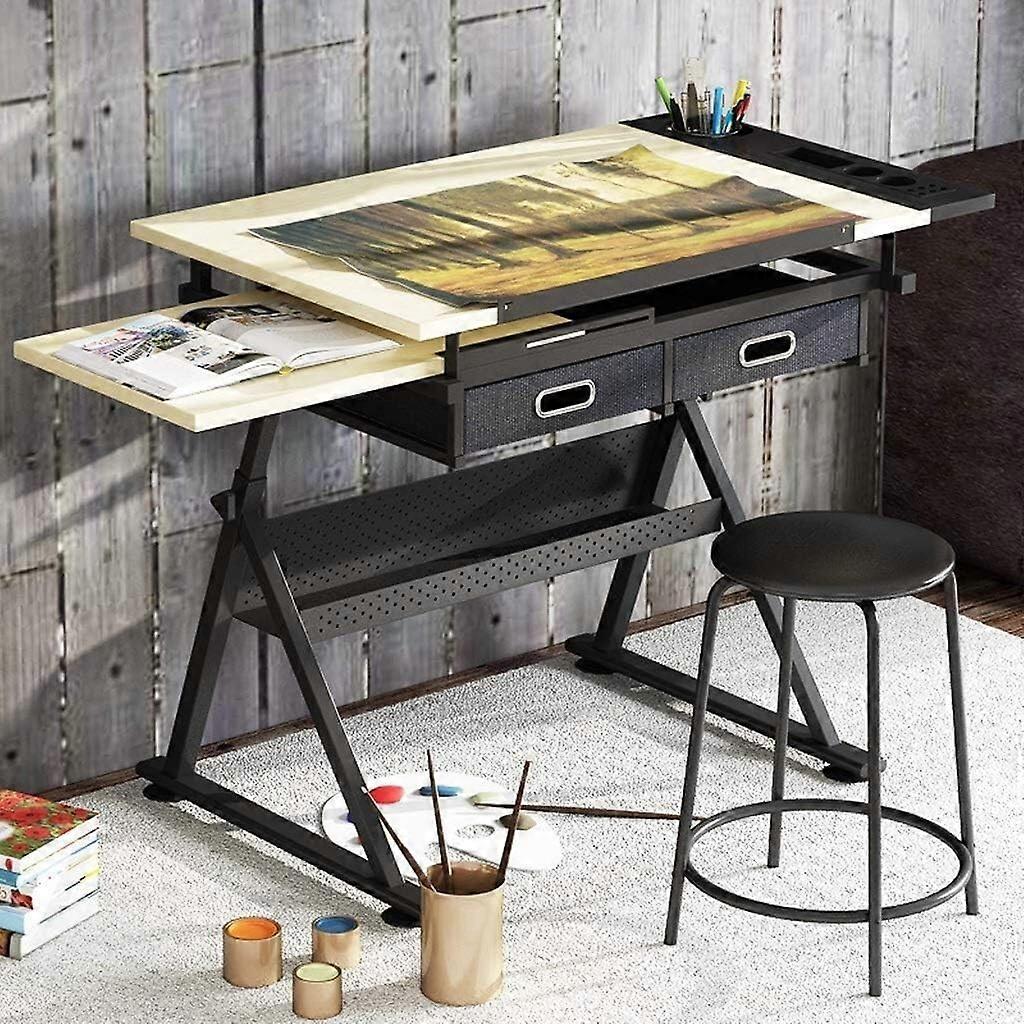 Drafting Table With Storage Maple Panel Drawing Desk Height Adjustable Tiltable Art Table