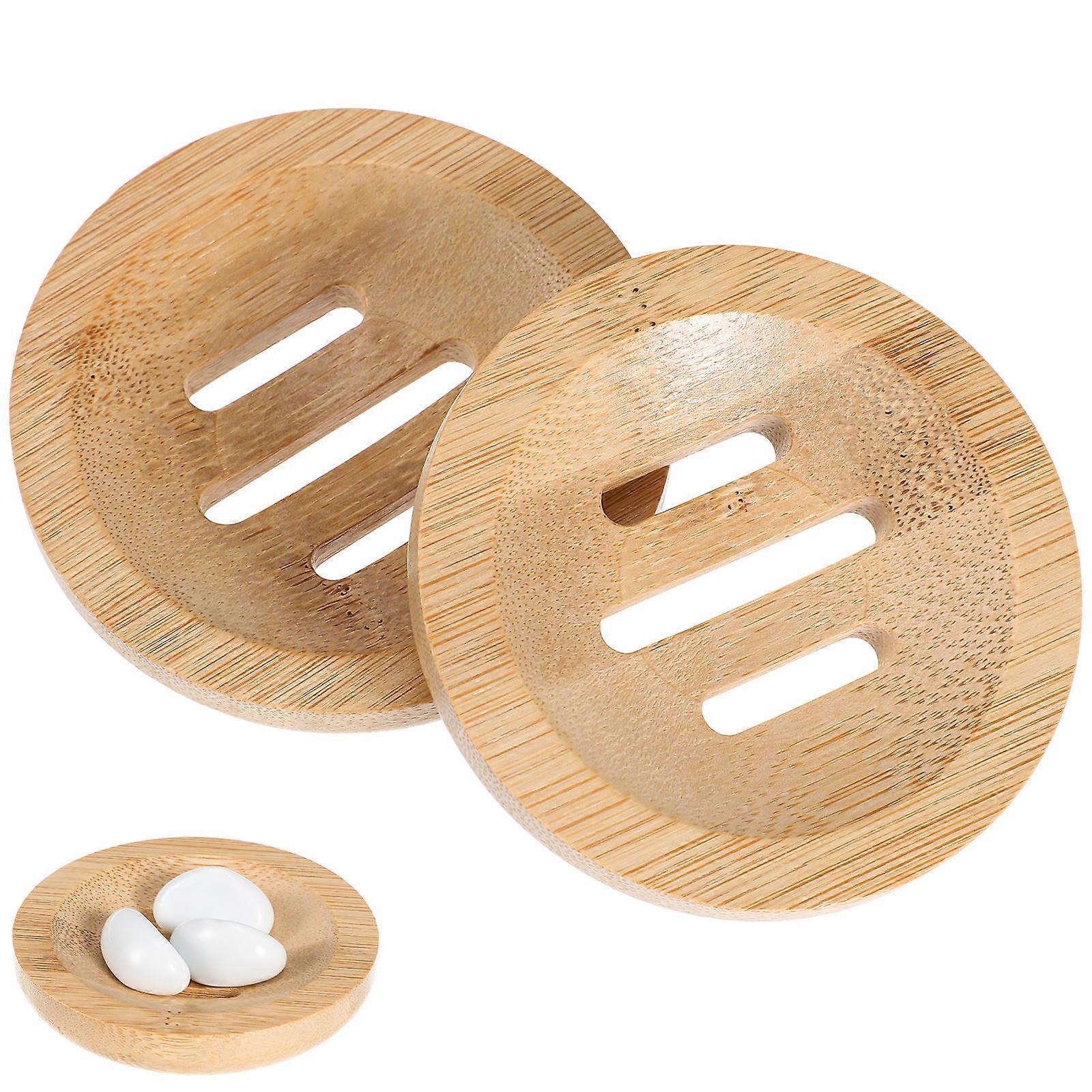 Drain Soap Box Bamboo Soap Holder for Storage 6Pcs Round Khaki