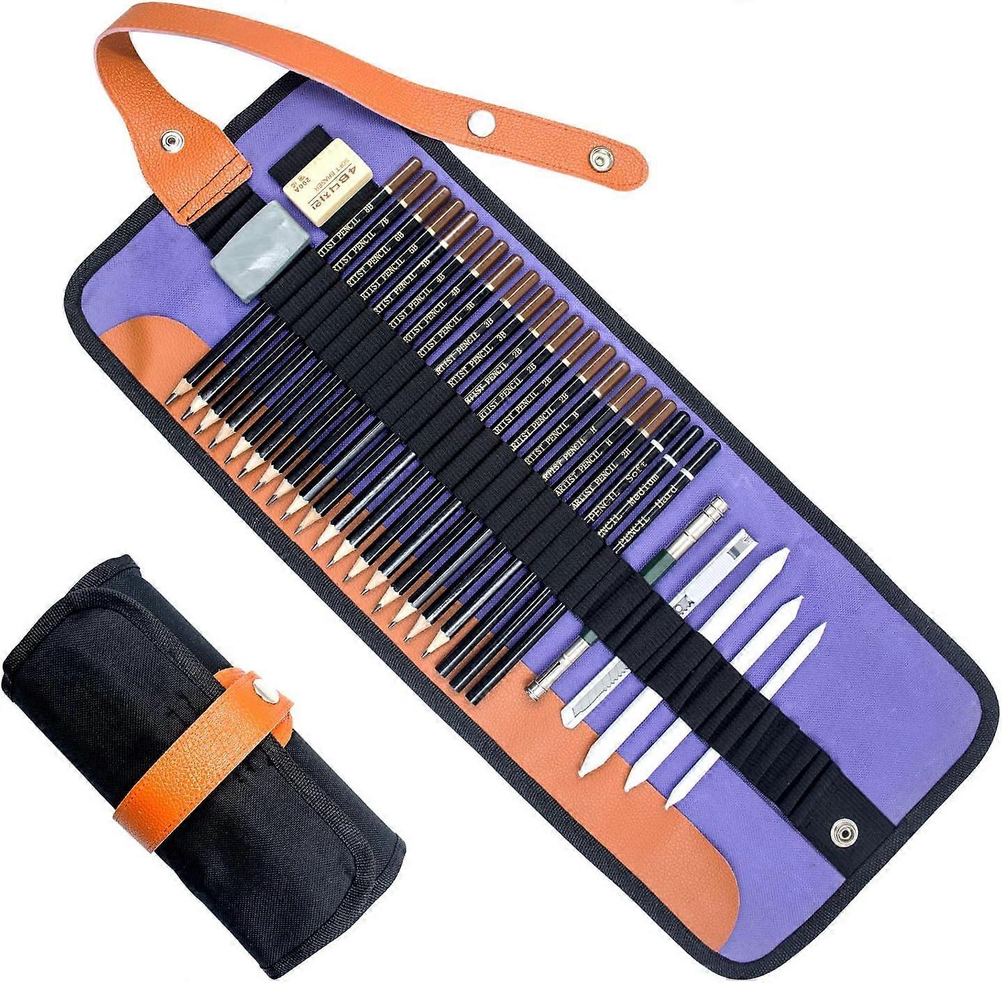 Drawing Pencils Set Sketching Pencils Set Art set with Graphite Pencils Charcoal Pencils Blending Stumps Pencil Extension Tool in Roll up Case for Art