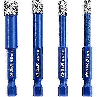Drill Bits Diamond Bits For Ceramic Tiles Porcelain Stoneware Tiles Glass Stone, Set Of 4 Professional Diamond Drill Bits --