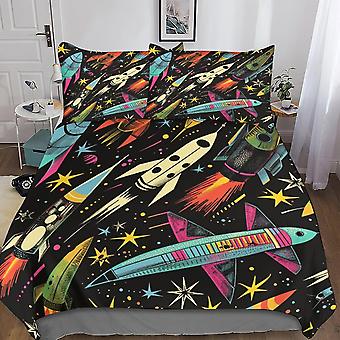 DSJackson Galaxy Planet Rocket 3D Print Duvet Cover 3PCs Universe Quilt Cover Bedding Set with Microfiber with Hidden Zipper Closure with Pillowcases