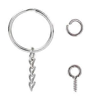 Durable 90x Split for Key Ring with Chain+ 90x Open Jump Rings + 180x Screw Eye Pins for Jewelry Making
