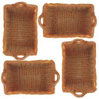 Durable Resin Mini Baskets for Storage 4 Pieces Light Brown Small Basket Models 1/12 Scale