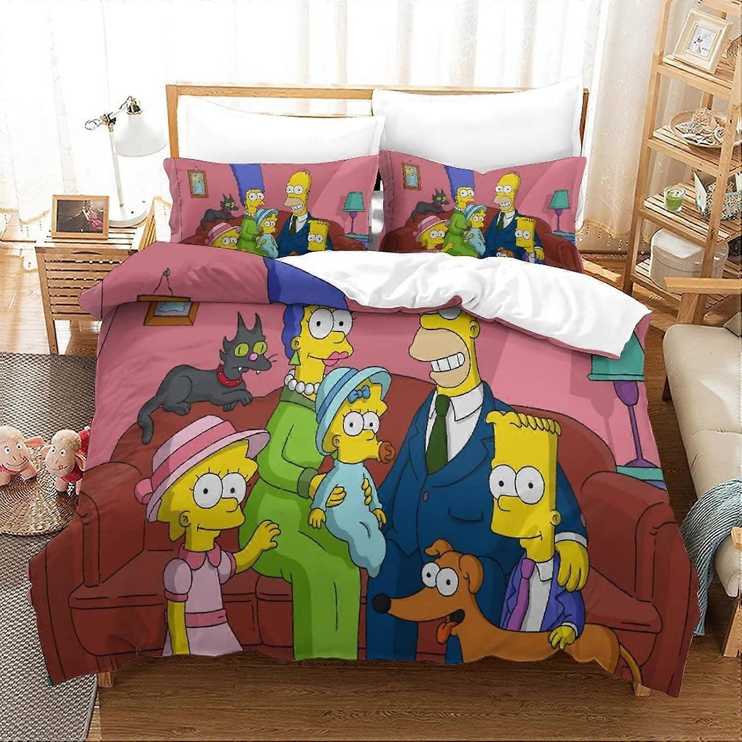 Duvet Cover Set Bedding Set 3 Pieces Set Ultra Soft Microfiber Polyester Comforter Cover 3D Simpson Printing Theme Quilt Cover with Zipper Closure Eas