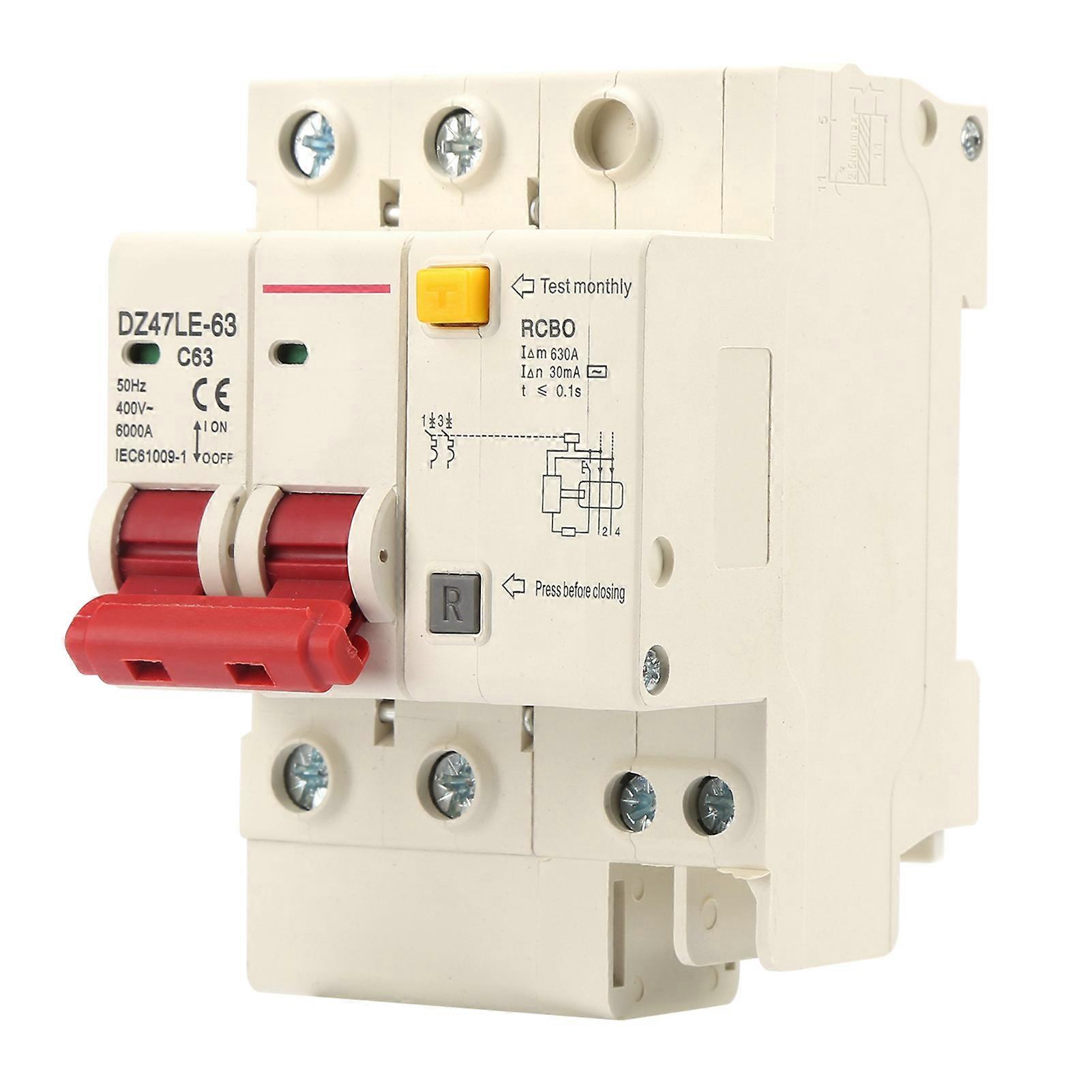 Condition: 100% Brand New_x000D_ Item Type: Circuit Breaker_x000D_ Model: DZ47LE-63_x000D_ Material: Plastic_x000D_ Number of Poles: 2P_x000D_ Rated Voltage: 400V_x000D_ Leakage Action Time: 0.1S_x000D_ Breaking Capacity: 6 (KA)_x000D_ Arc Extinguishing Medium: Air Type_x000D_ Application Scenarios: Home power distribution, industrial power distribution, commercial power distribution, and other AC power distribution_x000D_ Wiring Mode: Wiring in front of the board (live wire on the left, neutral wire on the right)_x000D_ Operation Mode: Direct operation by the handle_x000D_ Protection Type: Leakage protection_x000D_ Trip Method: Overcurrent trip_x000D_ Function: Overload, short circuit, leakage protection_x000D_ Purpose: Suitable for industrial and commercial lighting power distribution system