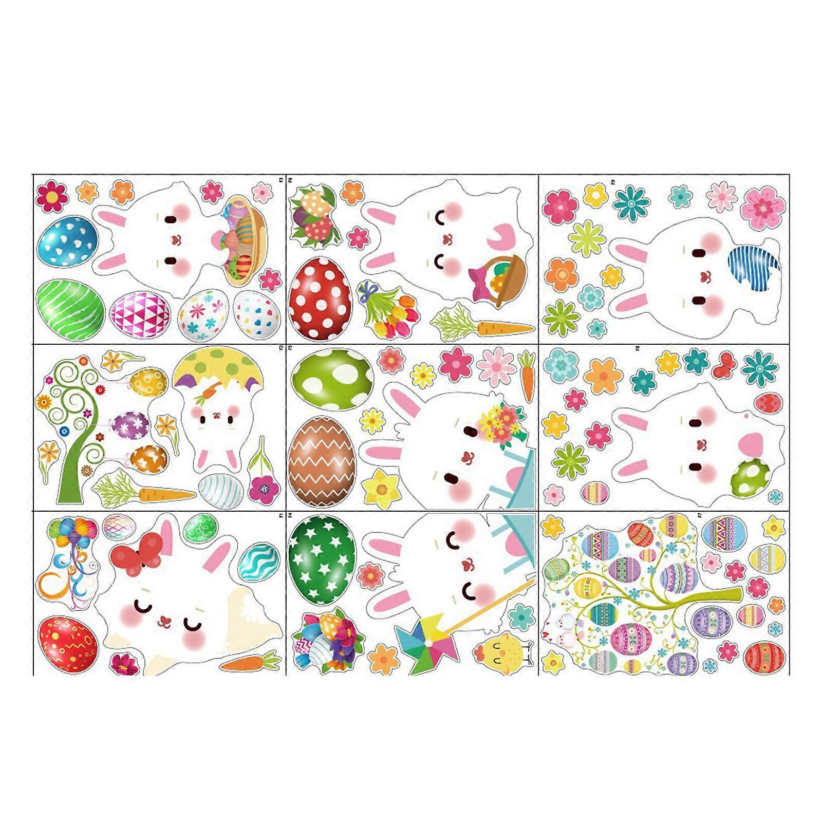 Easter Sticker Sheets Set of 9 Bunny Carrot Egg PVC Static Electricity Decal