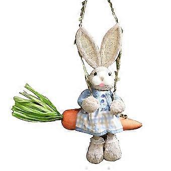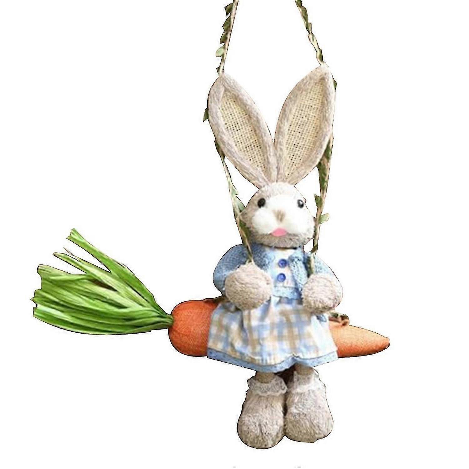 Easter Straw Bunny Figurine, Straw Rabbit on Carrot Swing, A