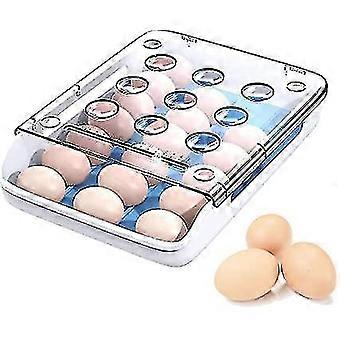Egg Holder For Countertop Or Refrigerator, Auto Scrolling Egg Storage Egg Container, Plastic Fridge Egg Tray, Stackable Egg Organizer With Lid 21 Eggs