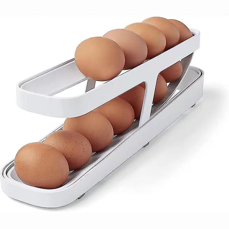 Egg Holder For Refrigerator, Automatically Rolling Egg Storage Container, 2 Tier Rolling Egg Dispenser, Space Saving