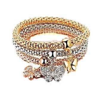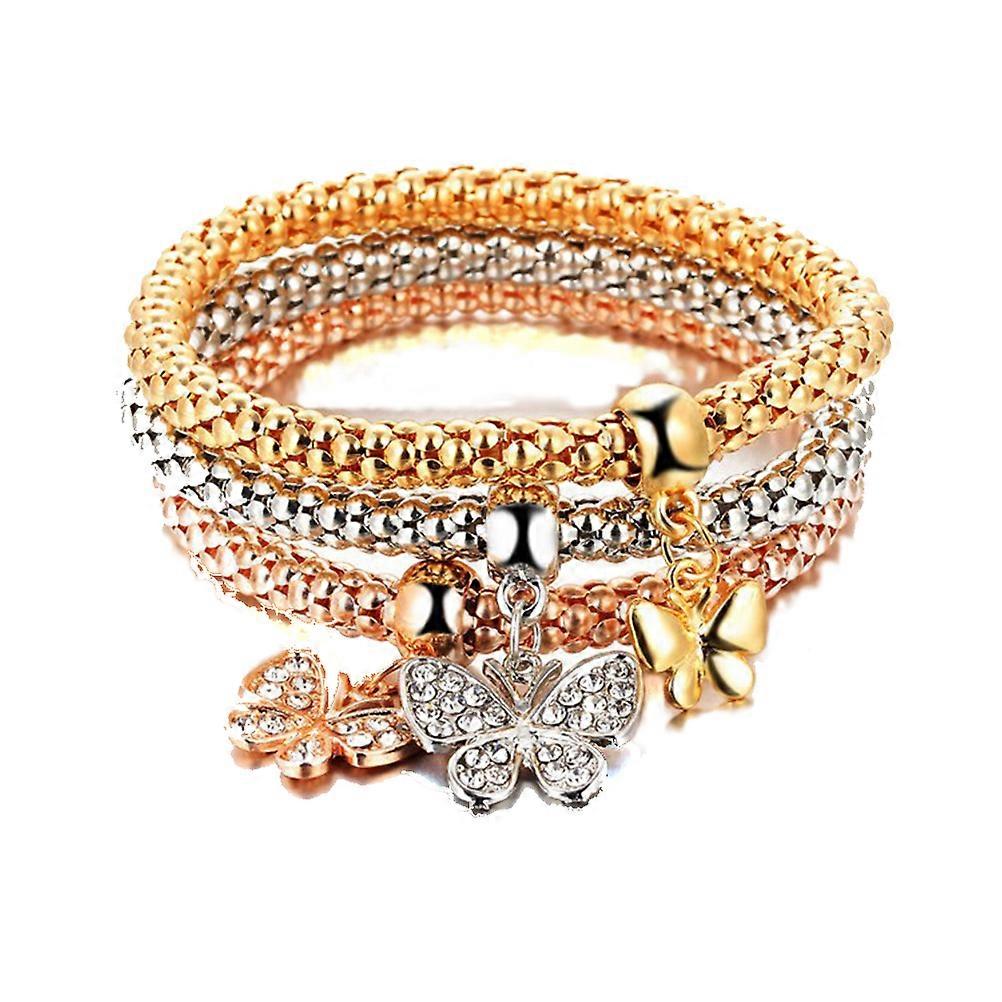 Elastic Crystal Bracelet Set for Women with Assorted Colors and Pendant Design 3 Pieces