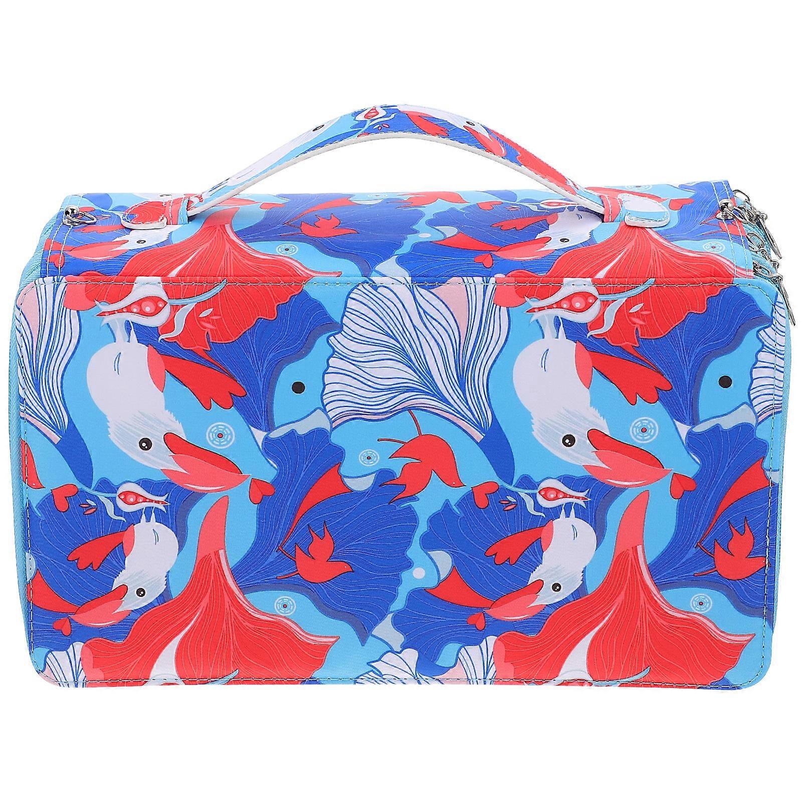 Elastic Rings Stationery Storage Pouch Rectangular Oxford Cloth Zipper Closure Students 1Pack