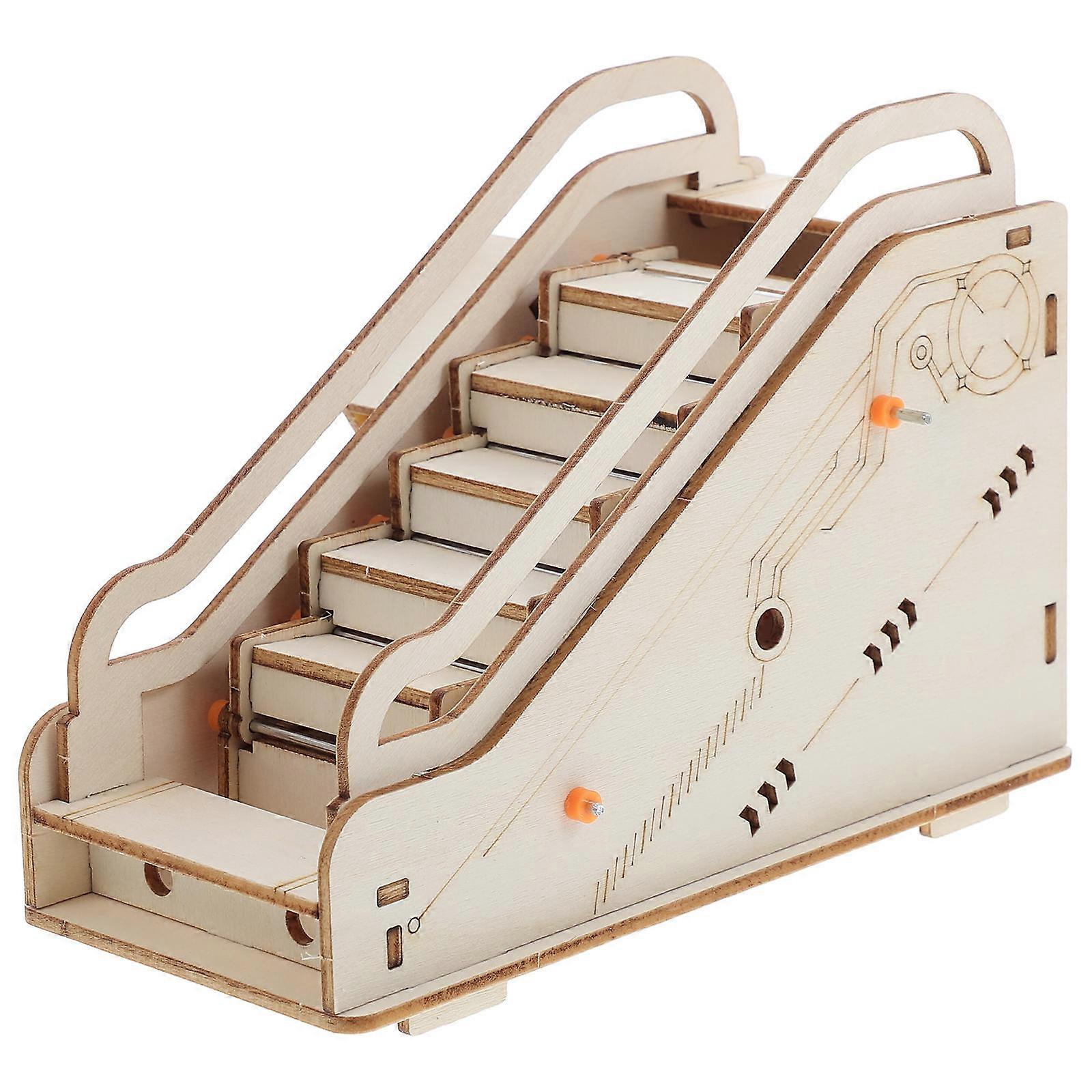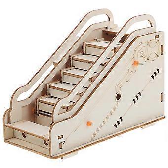 Electric Escalator Model Mini Conveyor Belt Toy Science Display Equipment Khaki Wood for Home Use 1 Set