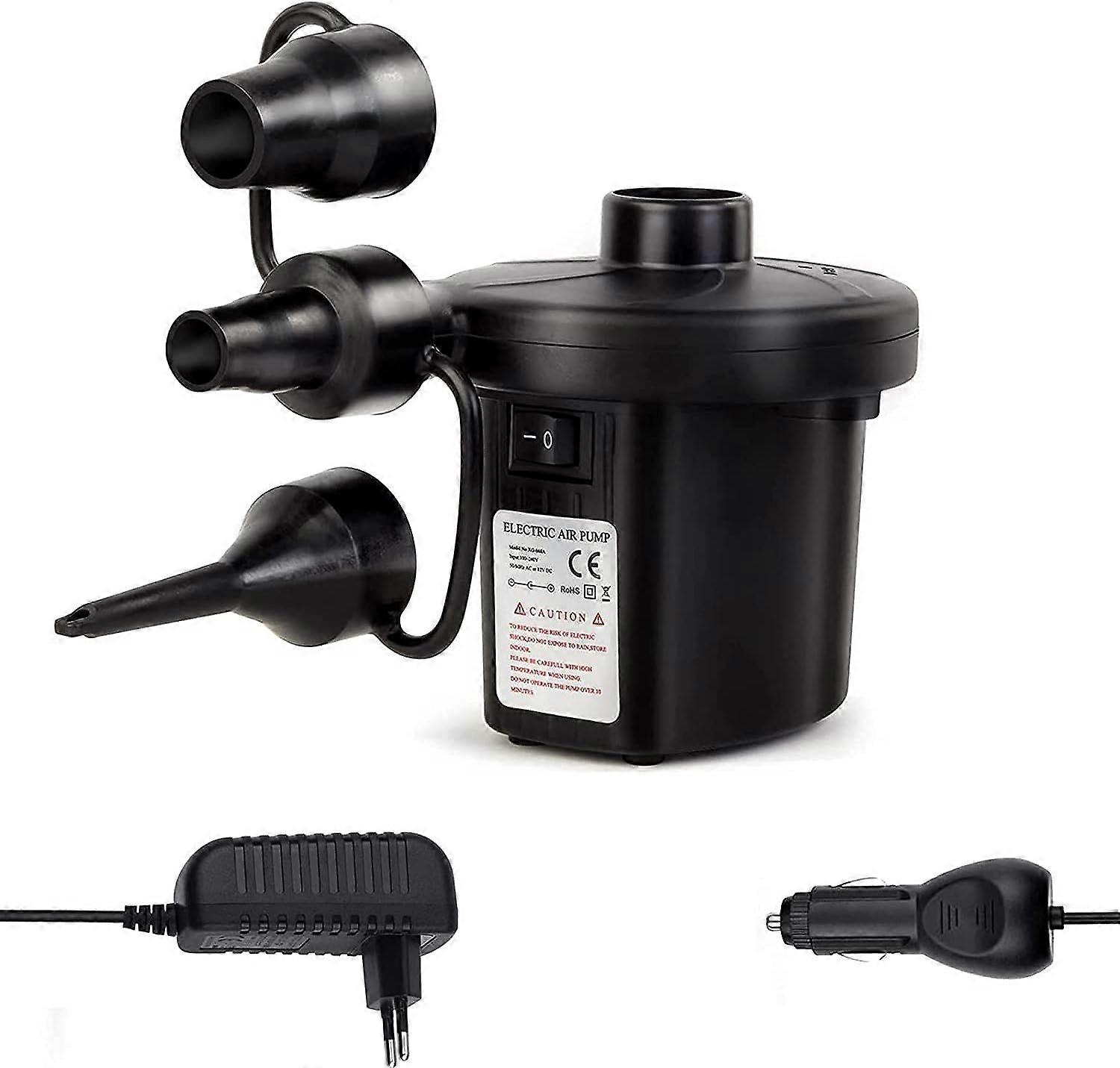 Electric Pump with 3 Nozzles, Inflate and Deflate 2 in 1 Pump with Home and Car Dual Function for Inflatable Mattress and Camping