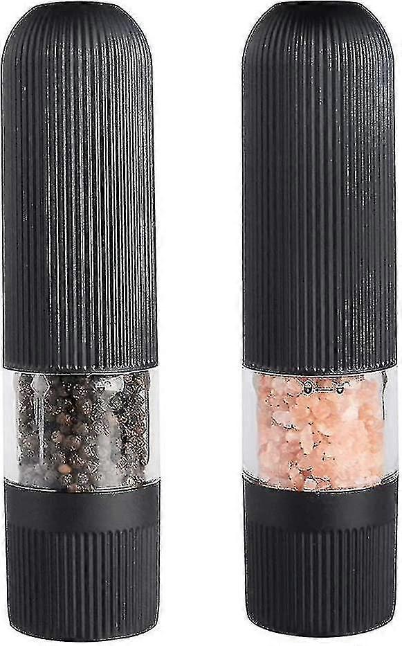 Electric Salt And Pepper Grinder Set Automatic One handed Operation Adjustable Coarseness Battery Powered With Led Light (2 Pack)