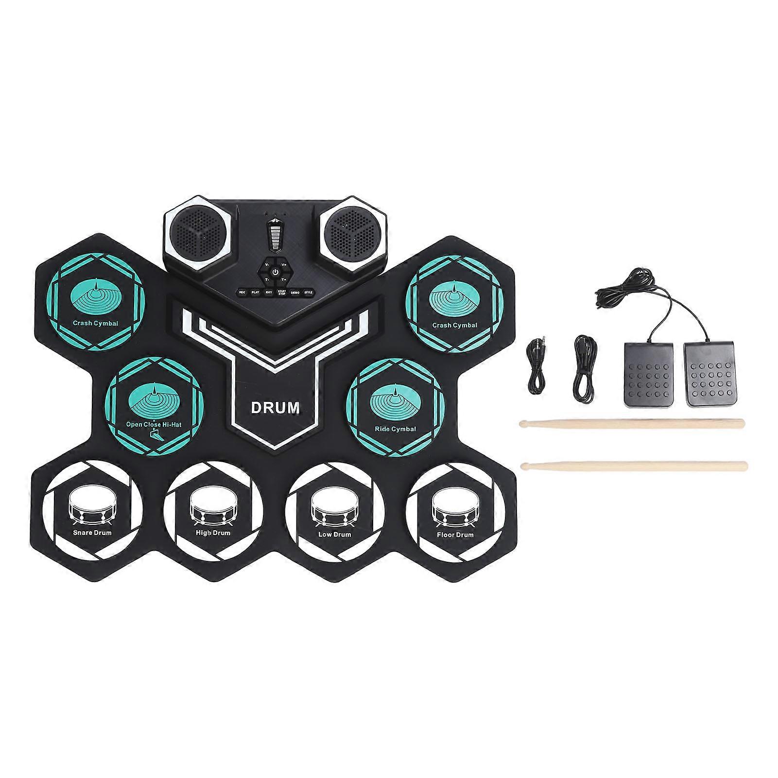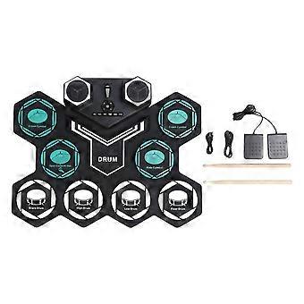 Electronic Drum Set Simulation Sound USB Rechargeable Silicone Roll Up Drum Practice Pad with Foot Pedal