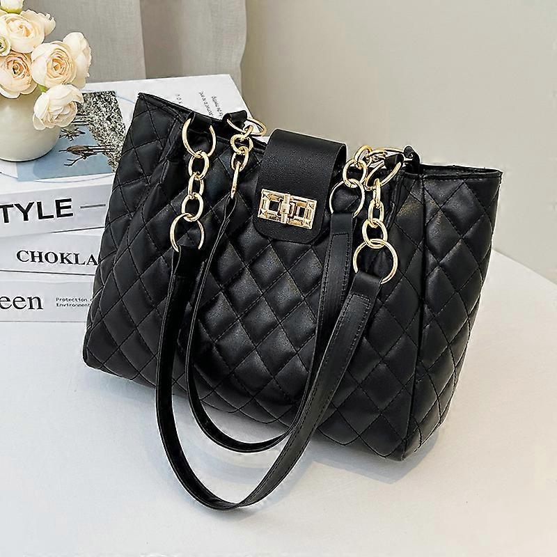 Elegant Women's Woven Fabric Shoulder Bag with Adjustable Chain Strap Front Flap Button Closure Professional Use, Woven Handbag