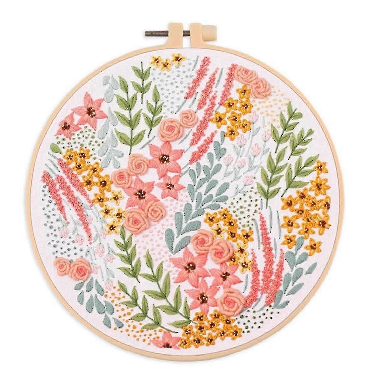 Embroidery Kit for Beginners and Embroidery Enthusiasts Includes Floral Landscape with Thread Needles,A