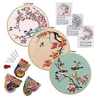 Embroidery Kit For Beginners Kits For Adults Include 3 Embroidery Cloth With Birds Pattern