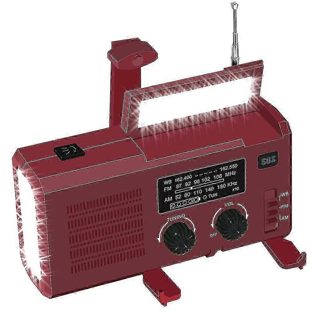 Emergency Disaster Prevention Solar Radio With Sos Siren, Portable Hand-crank Rechargeable Multi-function Torch Light (wine Red)