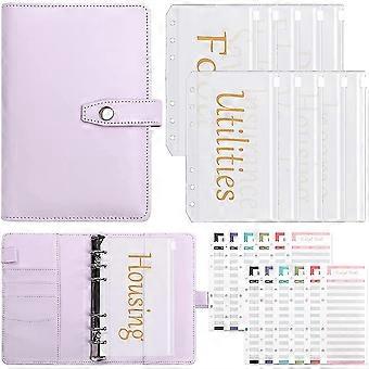 A6 Pu nahkainen muistikirjan kansiokansi, 6 rengas A6 sideaine budjetti käteiskuoret, suunnittelija matkapäiväkirjan kansiokansi, violetti