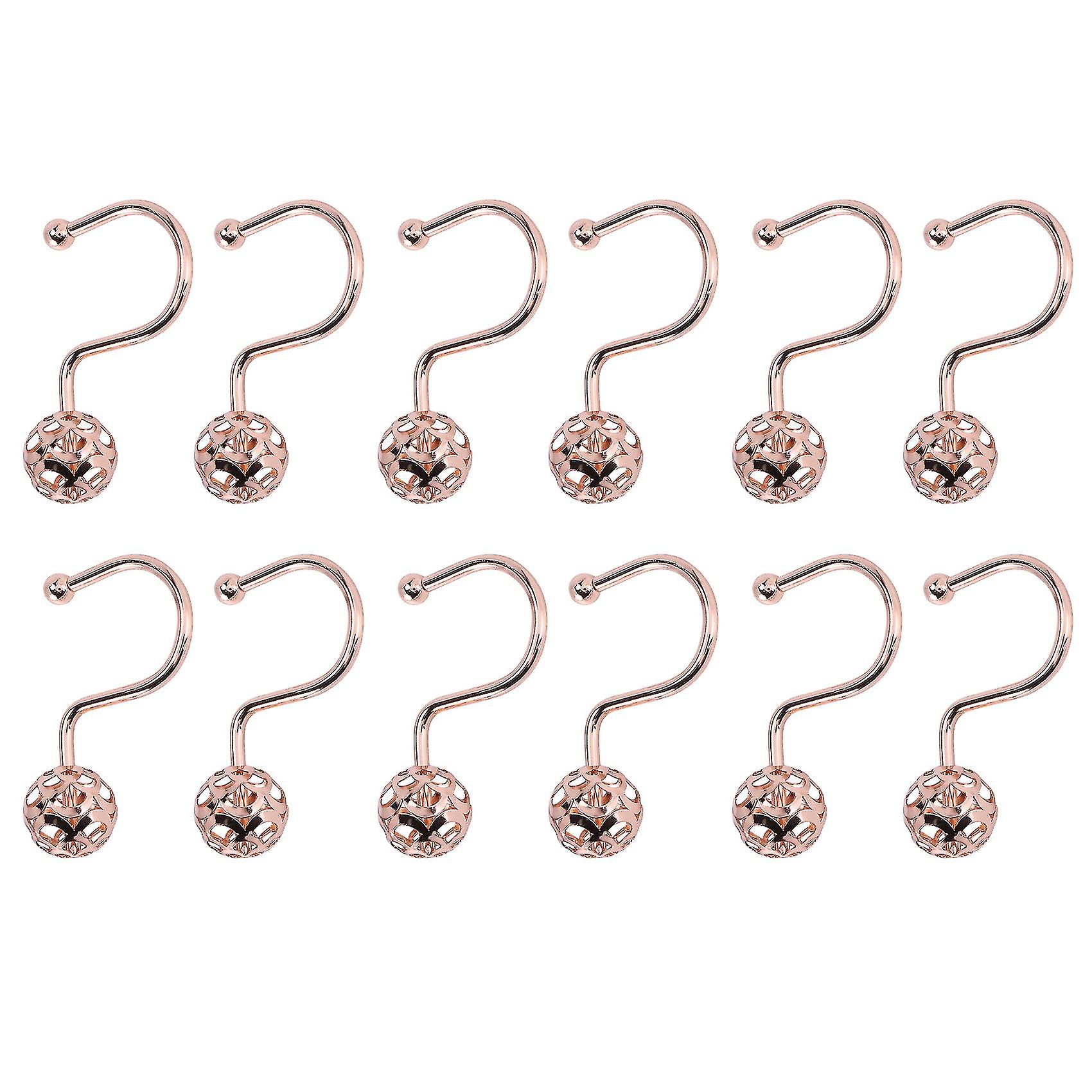 12-piece shower hook set for indoor/outdoor use in family hotels.Unique anti-rust shower curtain hook, easy sliding shower curtain rod and tension rod shower hook, suitable for any room bathroomVery sturdy and smooth polished material, elegant appearance, it can be perfectly matched with any curtains containing golden tones, stylishly with any decorative styleDurable and suitable for standard shower curtain rods, firmly fixed on straight or curved shower curtain rodsThe and cute appearance can decorate your living room, bedroom, stable room, children's room, holiday, holiday house bathroom, etc. It can also be used outdoors and is a great Christmas gift for friends.size:about 74x22cmMaterial:metalcolour: GoldPackage Contents:12 x shower curtain hooksOnly the above package content, other products are not included.Note: Light and different displays may cause the color of the item in the picture a little different from the real thing. The measurement allowed error is +/- 1-3cm.