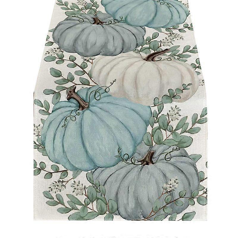 Fall Eucalyptus Leaves Pumpkins Table Runner, Table Decoration A
