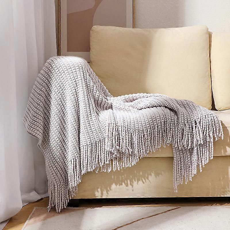 Fall Sofa Blanket - Soft Boho Style Blanket, Cozy Rust Color Knitted Farmhouse Chenille Blanket, Small Knitted Lightweight Blanket and Blanket for Bed