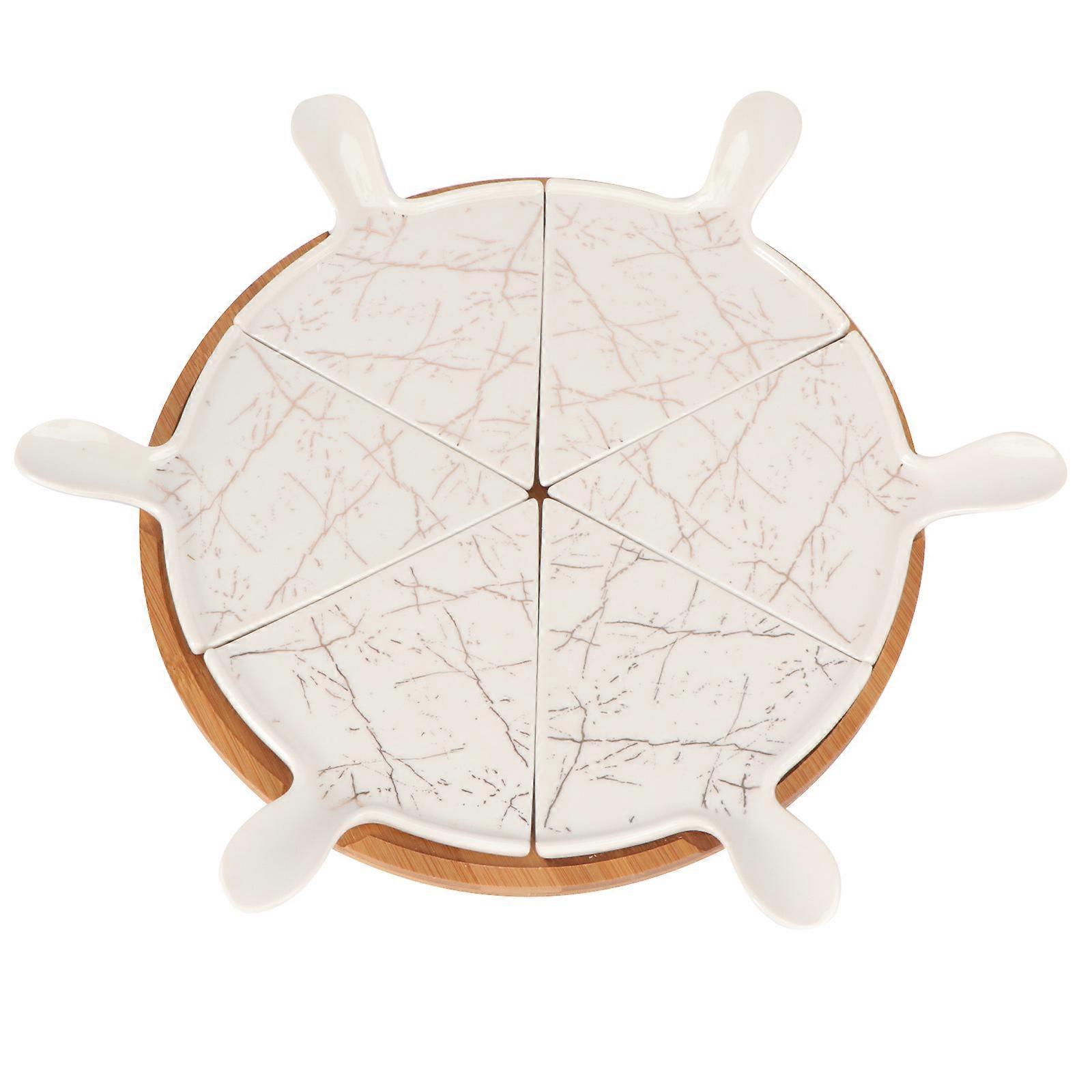 Farmhouse Ceramic Dessert Plate Unique Triangular Pizza Plate Set Suitable For Table Decor 12.58x12.58in With Bamboo Tray 1 Bamboo Tray