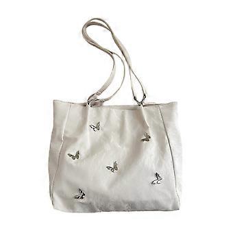 Fashionable Shoulder Bag with Unique Butterfly Pattern Large Capacity Zippered Underarm Handbag for Office and Shopping White