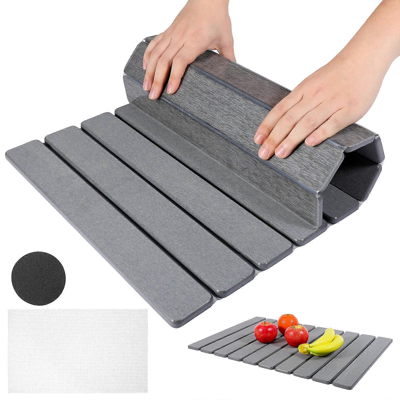 This versatile stone drying mat is designed for kitchen countertops, providing a stable and sturdy surface for drying dishes. Its foldable feature allows for easy storage, perfect for compact kitchens. The diatom mud composition enhances its ability to dry items quickly, reducing water spots and mess. Features -Color:Dark Grey -Material:Diatom mud -Size:59.00X39.00X1.00cm/23.19X15.33X0.39in -Space saving solution: foldable design allows for easy storage, making this stone drying mat ideal for compact kitchens and maximizing countertop space -Quick absorption: crafted from diatom mud material, this stone drying mat for kitchen counter rapidly absorbs water, keeping your kitchen counter dry and free from excess moisture -Lasting use: designed for durability, this drying mat for kitchen resists wear and tear, ensuring reliable performance for everyday use -Versatile dimensions: the kitchen counter drying mat accommodates various kitchen tasks, from drying dishes to prepping ingredients, providing great utility -Stylish and functional: its sleek design complements modern kitchen decor, enhancing both functionality and visual appeal Package list: 1 x Drying Mat 1 x mesh Mat 1 z Instruction 1 x Round Grinding Paper