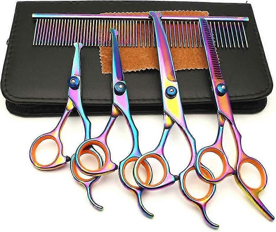 Favson Pet Ging Scissors Set Round Tip, Pet Trimmer Kit -effiling Scissors, Curved Sci