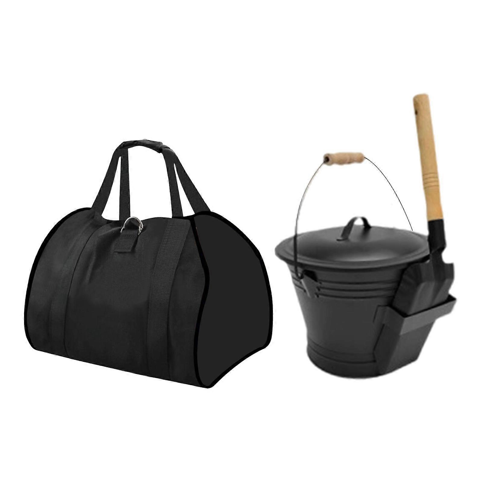 Fireplace Tools Pail Firewood Storage Ash Bucket with Shovel and Log Carrier