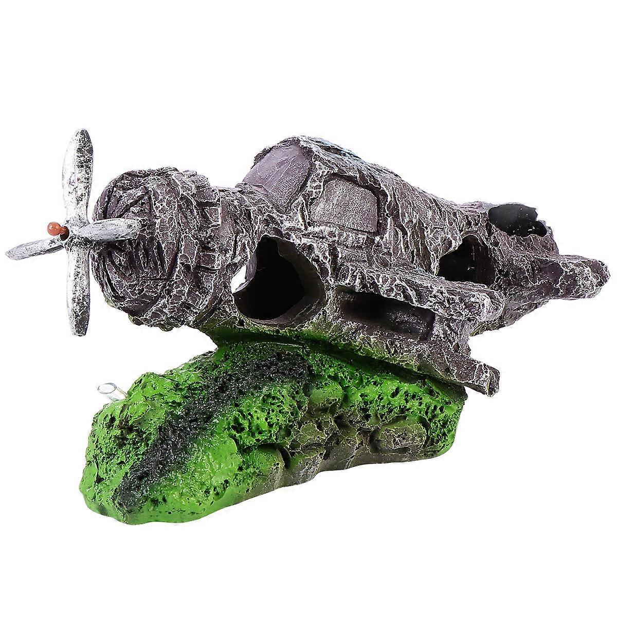 Fish Tank Decorative Fish Hiding Cave Plane Crashed Shape Grey Resin Adornment Aquarium Setup 1Pack