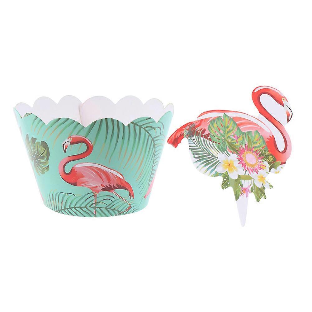 Flamingo Cake Wrapper and Topper for Cake Decoration 48Pcs Assorted